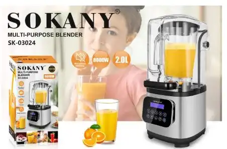 Sokany Digital Muffler Blender, 8000 Watt, 2 Liters, Stainless Steel - SK-03024
