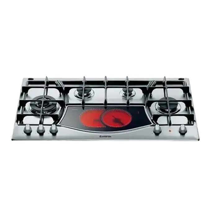 Ariston Built-In Gas Hob 4 Burners and 2 ELECTRIC Halogen, Stainless Steel, 90 cm - PH 941MSTV GH