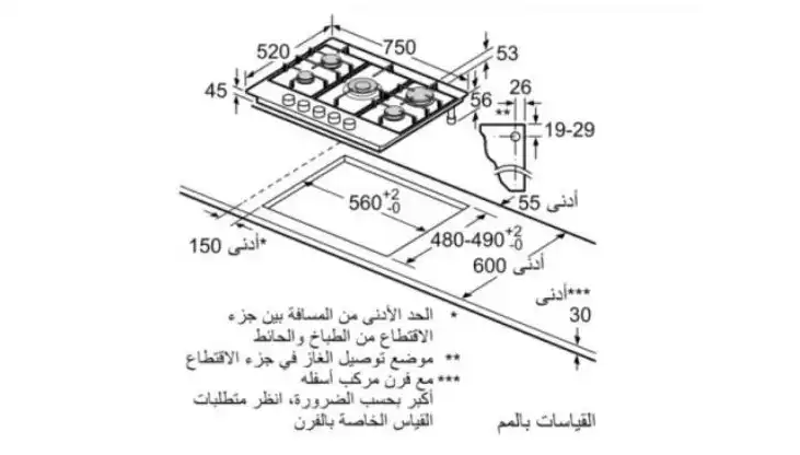 Bosch Built-In Gas Hob 5 Burner, 75 cm, Stainless Steel - PCQ7A5B90