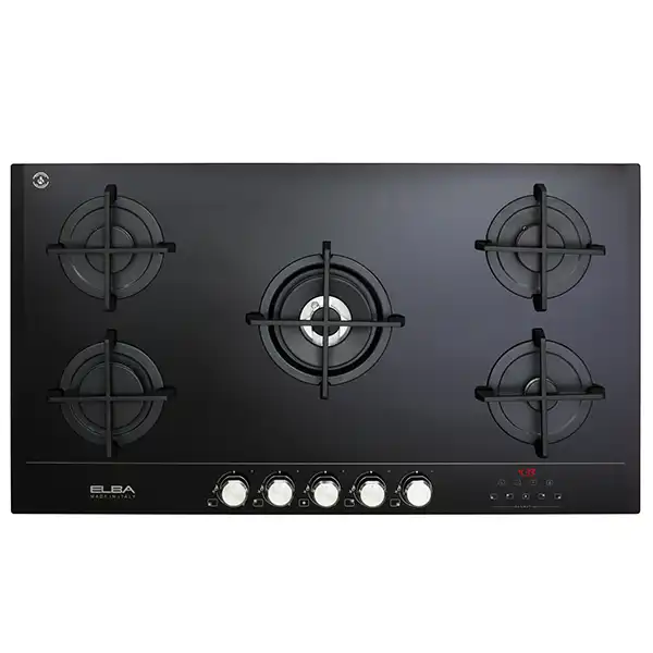 Elba Built-In Smart Gas Hob, 5 Burners, 90 cm, Black Glass - ELIO95G‐MATIK