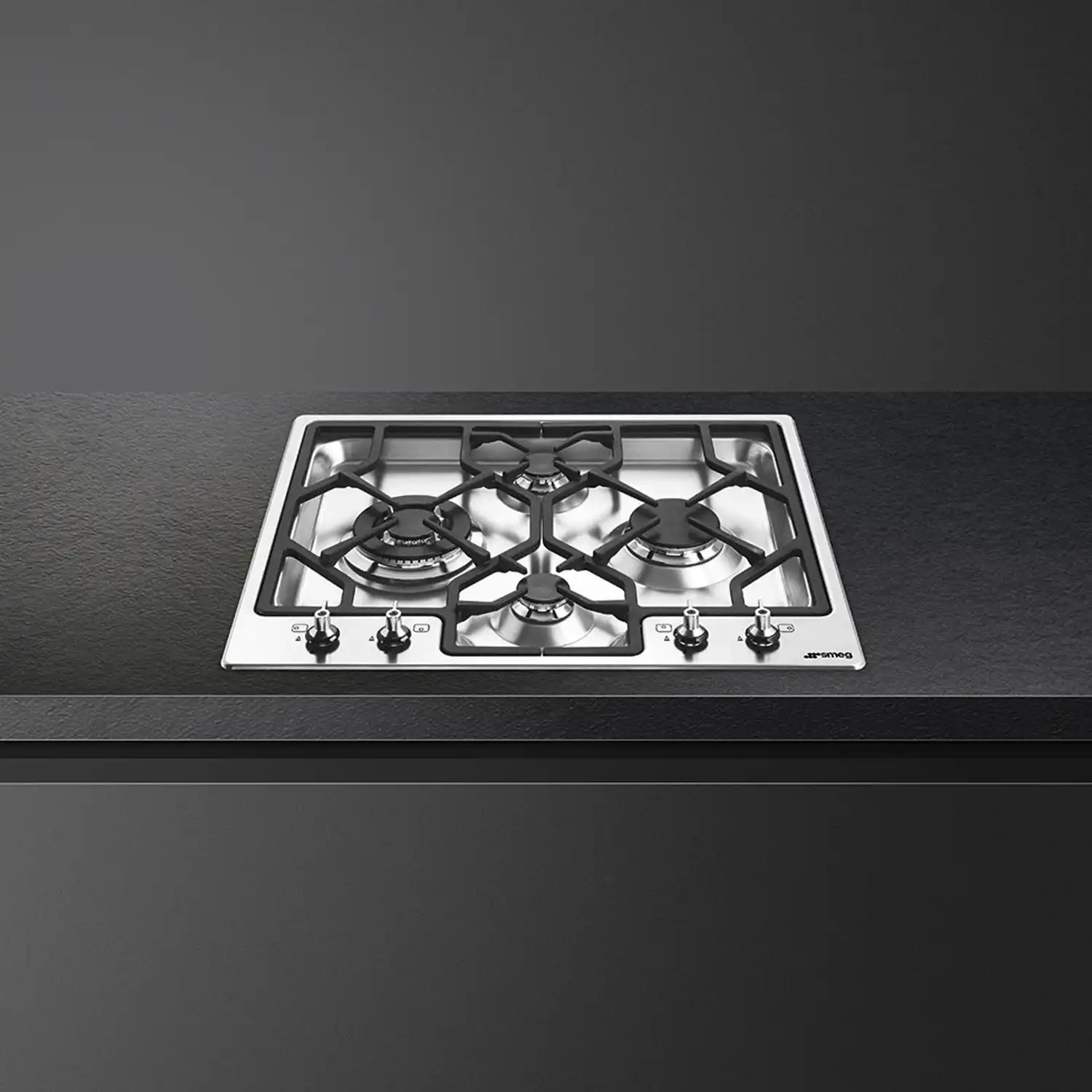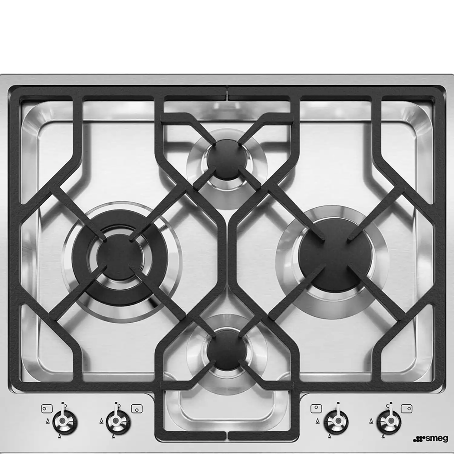 SMEG BUILT IN HOB 4 BURNERS GAS CAST IRON FULL SAFETY STAINLESS STEEL PGF 64-4