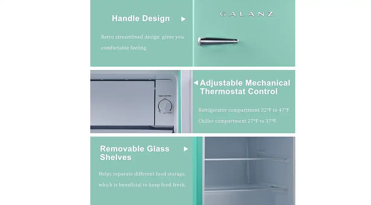 Galanz Retro mini bar, with Single Doors, Defrost Adjustable Mechanical Thermostat with Chiller, 97 LITER, Green - BC-103F-53H-G