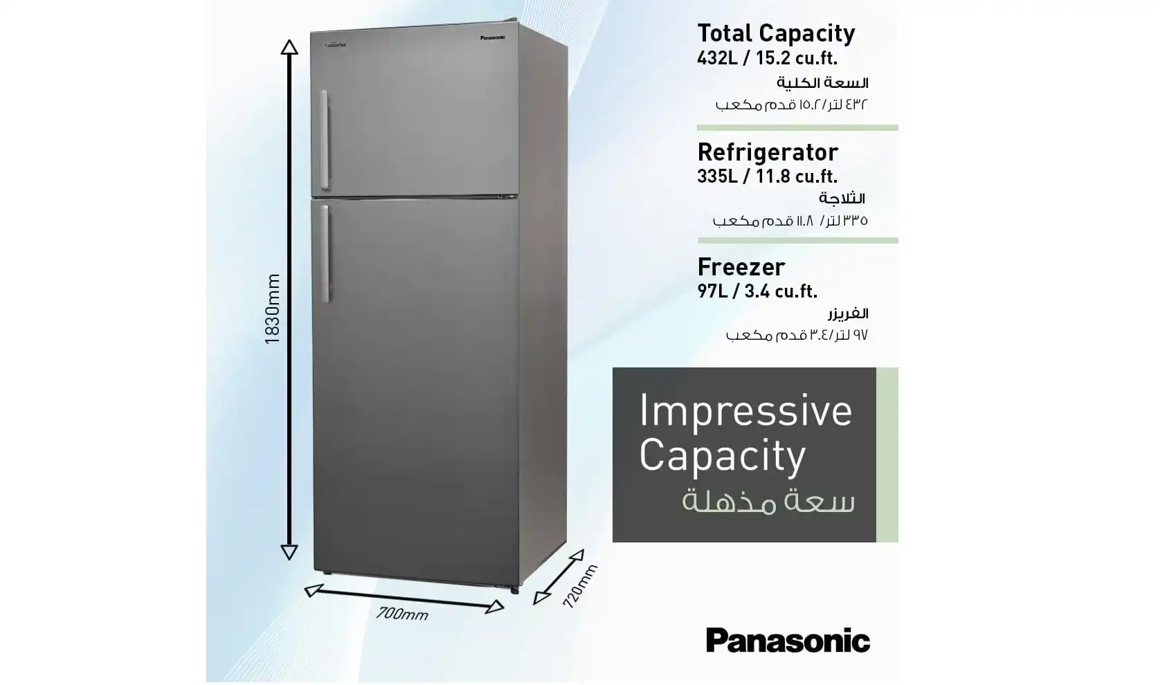 Panasonic Refrigerator, No Frost, Top Freezer, 432 Liters, Inverter, Inox - NR-BC573VSEG