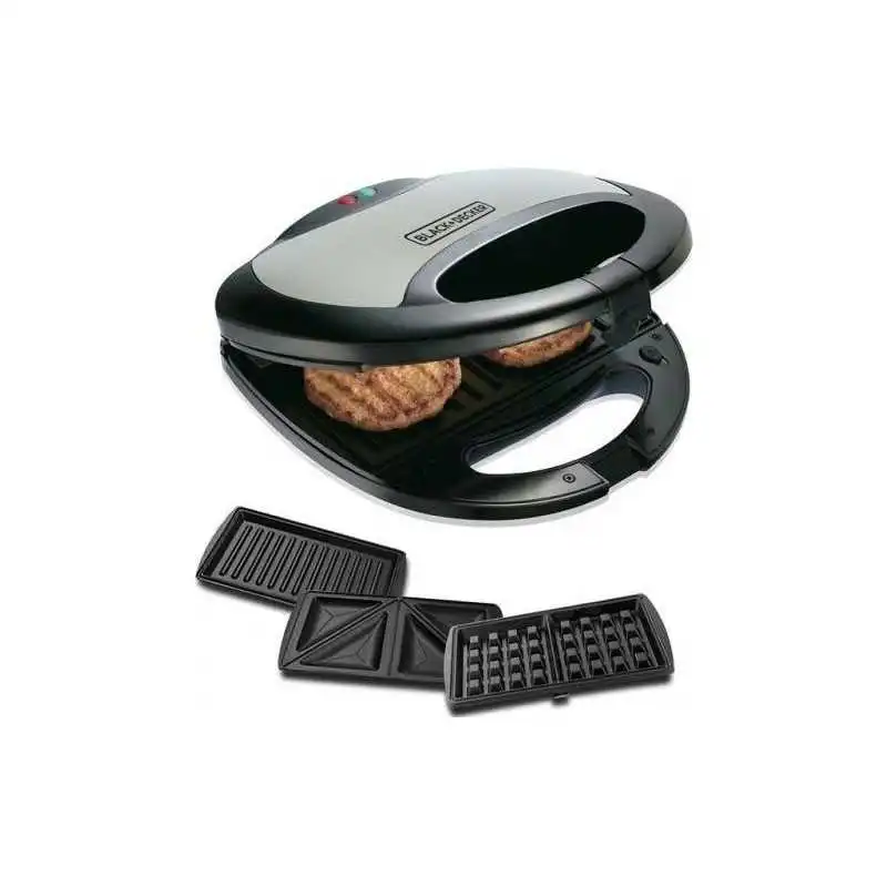 BLACK & DECKER Sandwich, Grill and Waffle Maker, 750 Watt, Black - TS2090