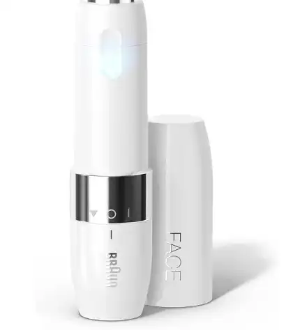 An elegantly designed, mini-sized electric facial hair remover for women, delivering fast and gentle hair removal results. The Braun Mini Hair Remover cuts hair close to skin level, leaving your face smooth, consistent and free of peach fuzz. Quick and gentle hair removal: whenever, wherever. Box includes: 1 X Mini Hair Remover 1 X White Cap 1 X Cleaning Brush 1 X AA Battery