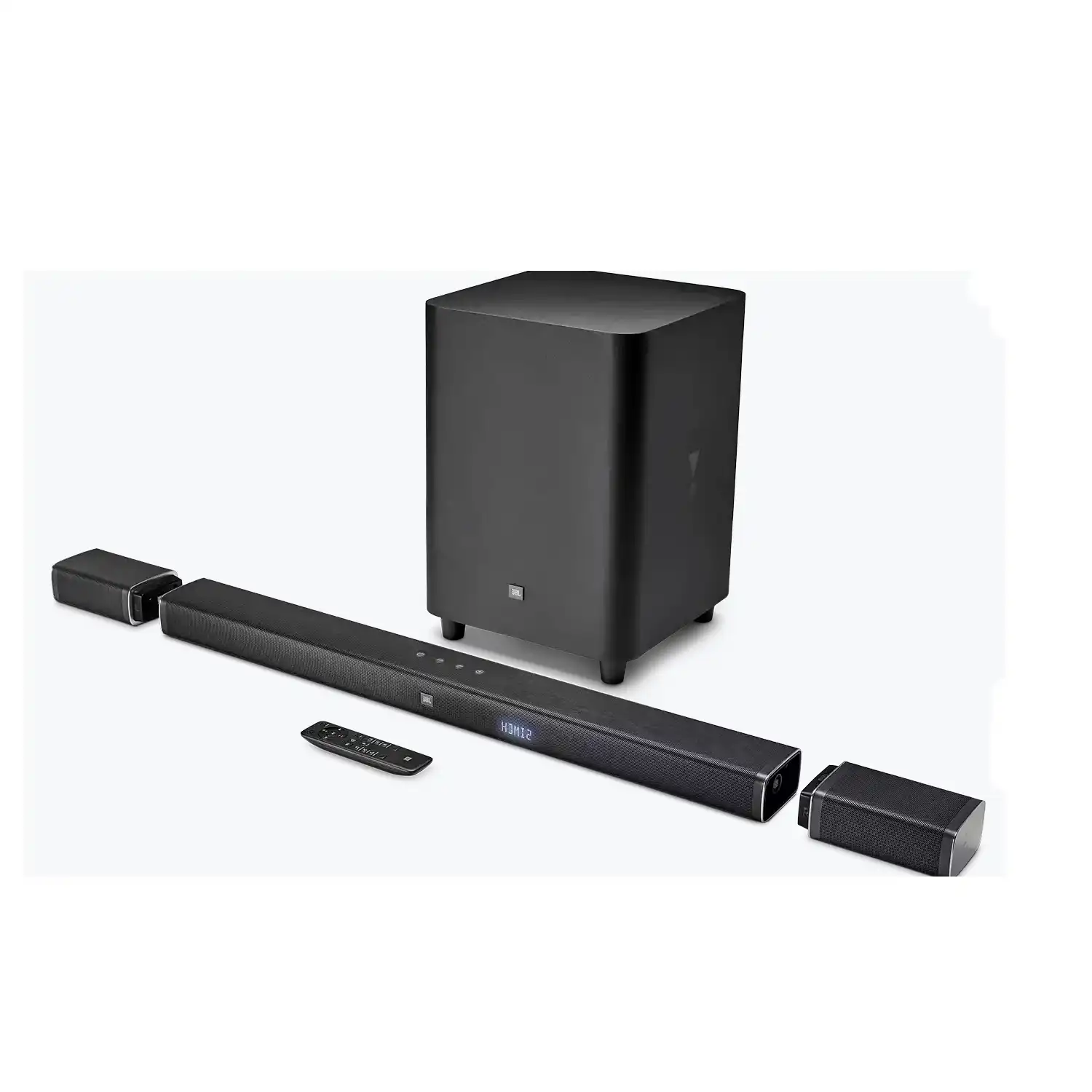 | JBL 5.1 surround sound bar with detachable wireless speakers Total maximum power: 510W Audio inputs: 1 Analog, 1 Optical, Bluetooth 4.2, USB Works with TV Remote Control 4K connectivity with 3 HDMI In/ 1 HDMI Out (with Audio Return Channel) Number of pieces: 5 Color: black |