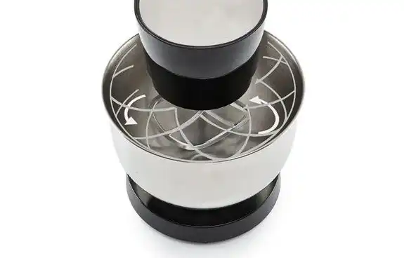 - 3 solid metal attachments: whisk attachment, light dough attachment, heavy dough attachment