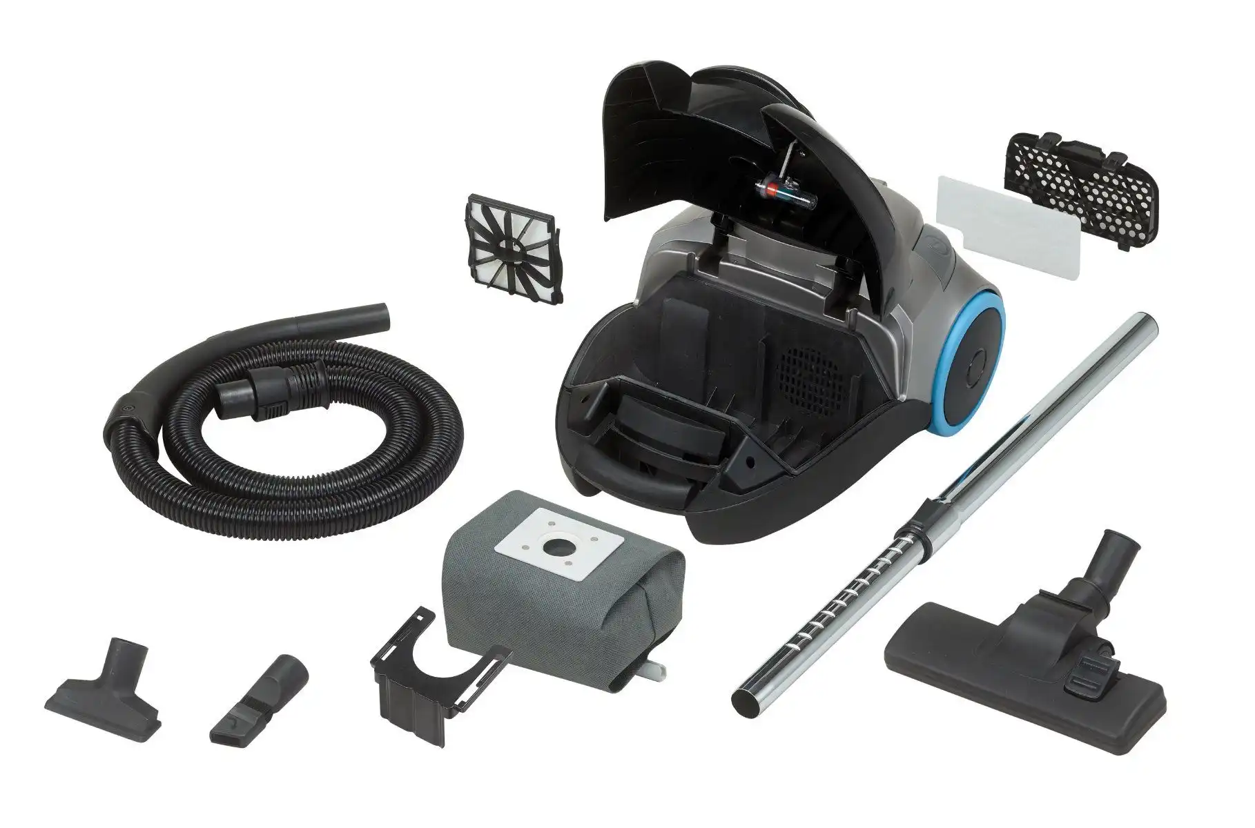 - Full dust bag indicator, Sturdy floor brush (For versatile cleaning), Attachments for narrow areas, upholstery, curtains and other fabrics, Reusable and washable dust bag