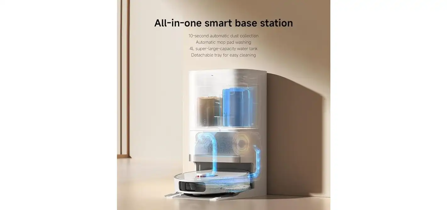 - Smart All-in-One Base: The vacuum includes a smart charging base that automatically cleans the mop after each use, ensuring it's clean and ready for the next round.