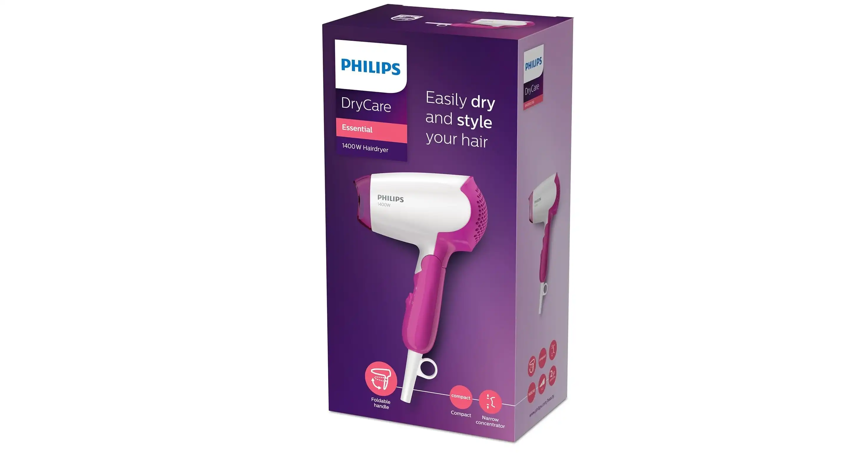 PHILIPS Hairdryer Dry Care Essential, 1400W, White / Pink - BHD003/03