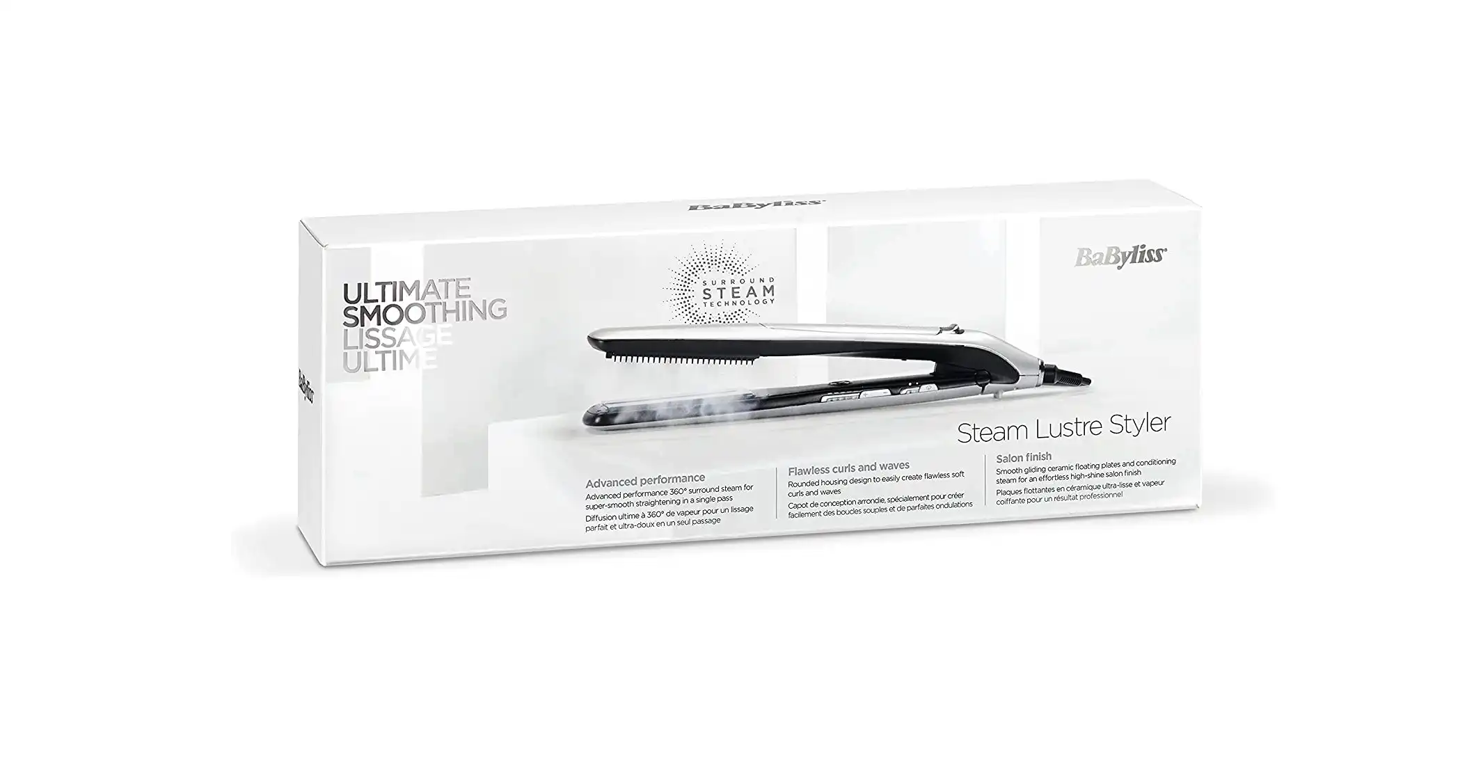 BaByliss Steam Luster Steam Straightener, Silver - ST595E