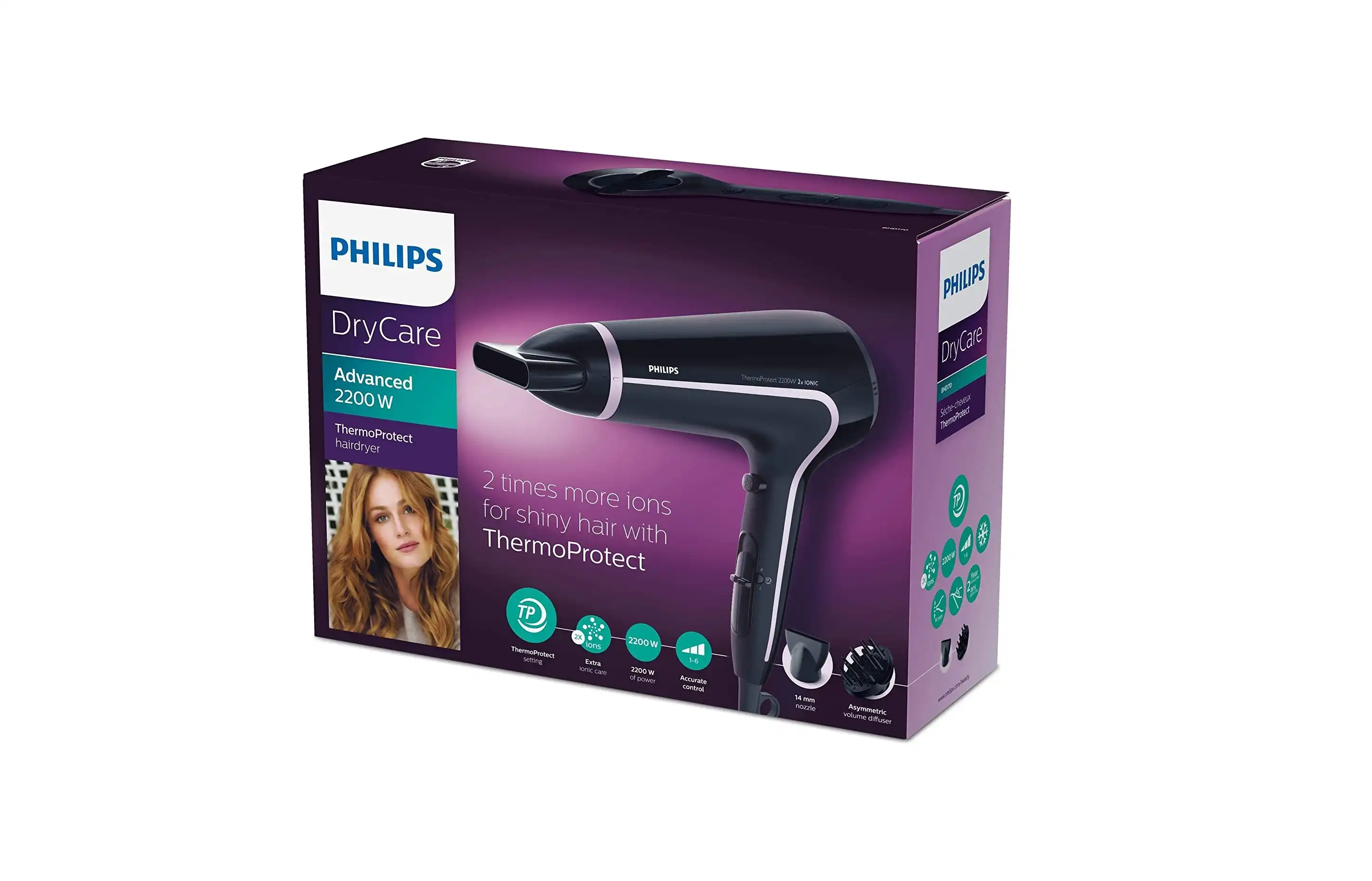 Philips Hair Dryer with Diffuser, 2200 Watt, Black / Purple - BHD170/40