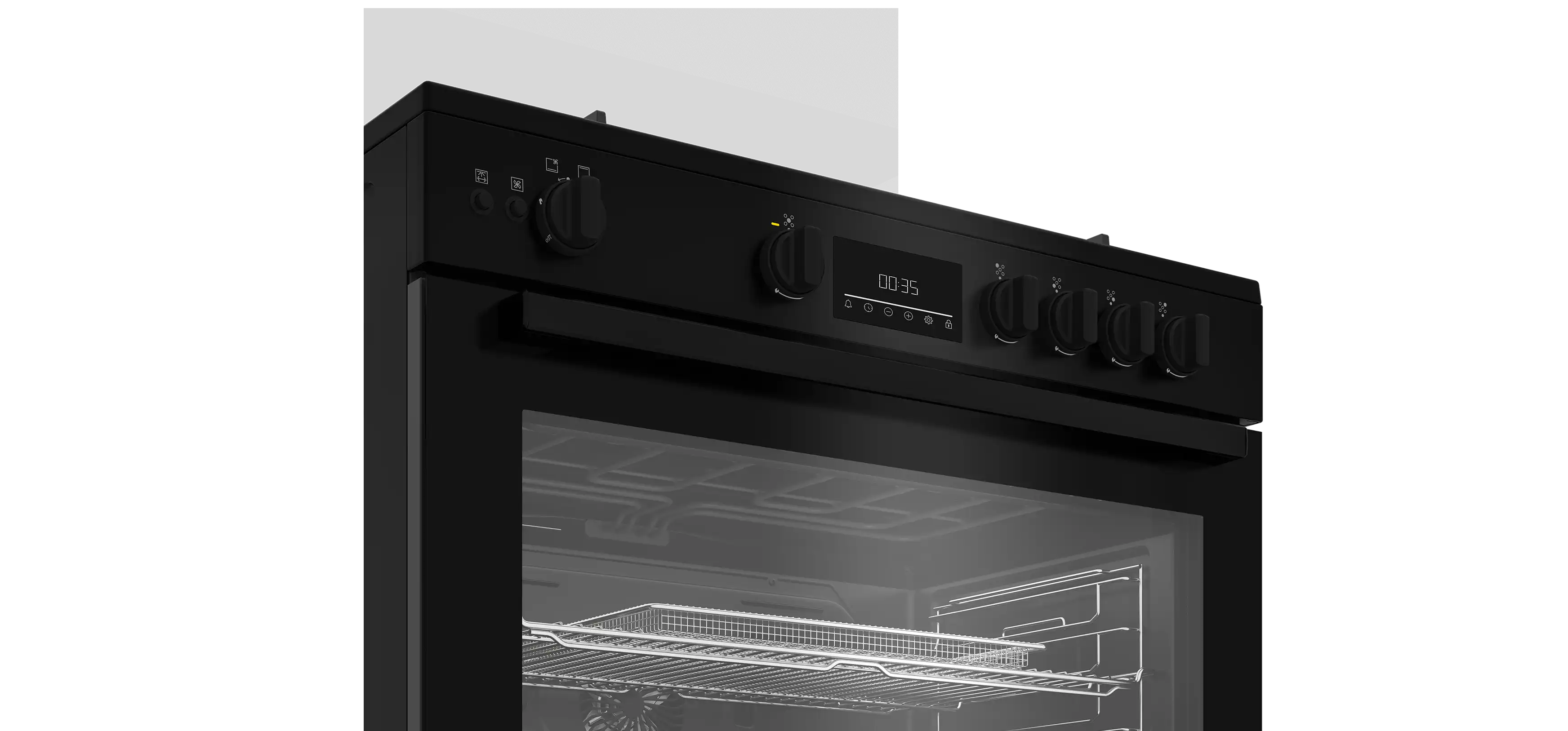 Beko Cooker with Fan, 5 Burners, Safety, 90 cm, Black - BGGR 11225 GB