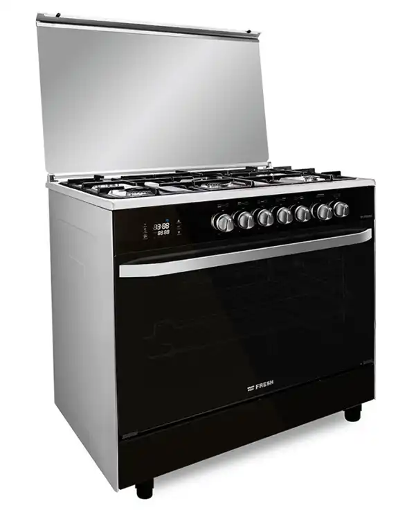 Fresh Hammer Touch Freestanding Digital Gas Cooker, 5 Burners, 90 Cm, Black Glass - 500006372