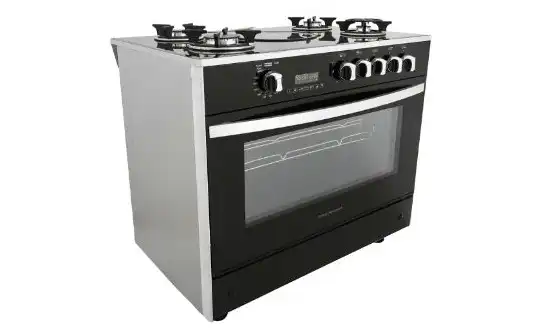 Premium Gas cooker, 4 burners, 1 electric burner, full safety, digital display, fan, 90 cm, Black - PRM6090GS-AC-383-IDSH-S-F-2W