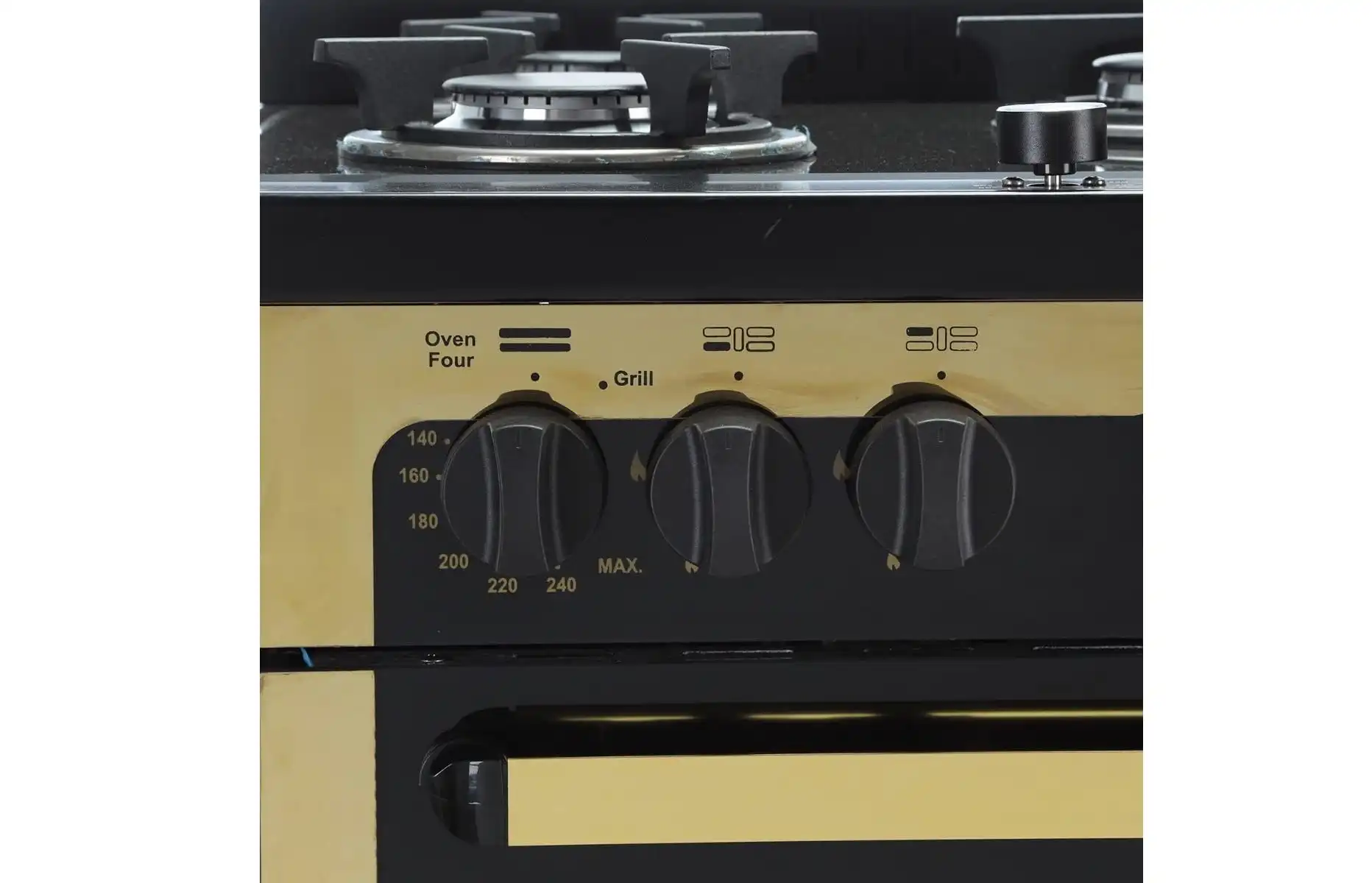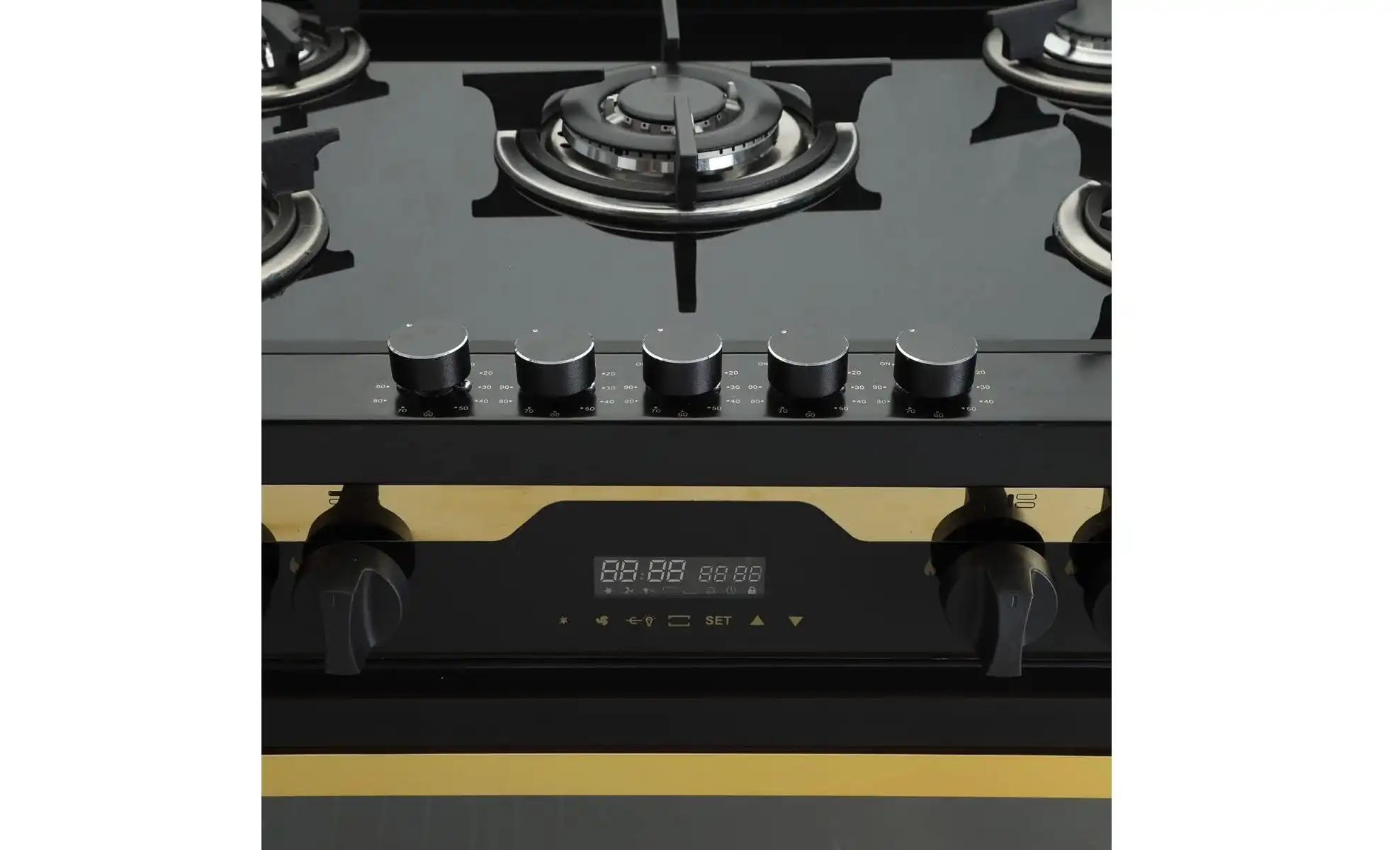 Unionaire Gas Cooker, 5 Burners, Full Safety, Digital Screen, 90 cm, Black with Golden Frame - C69GB-1GC-383-IDSP-S-PC-2W-AL