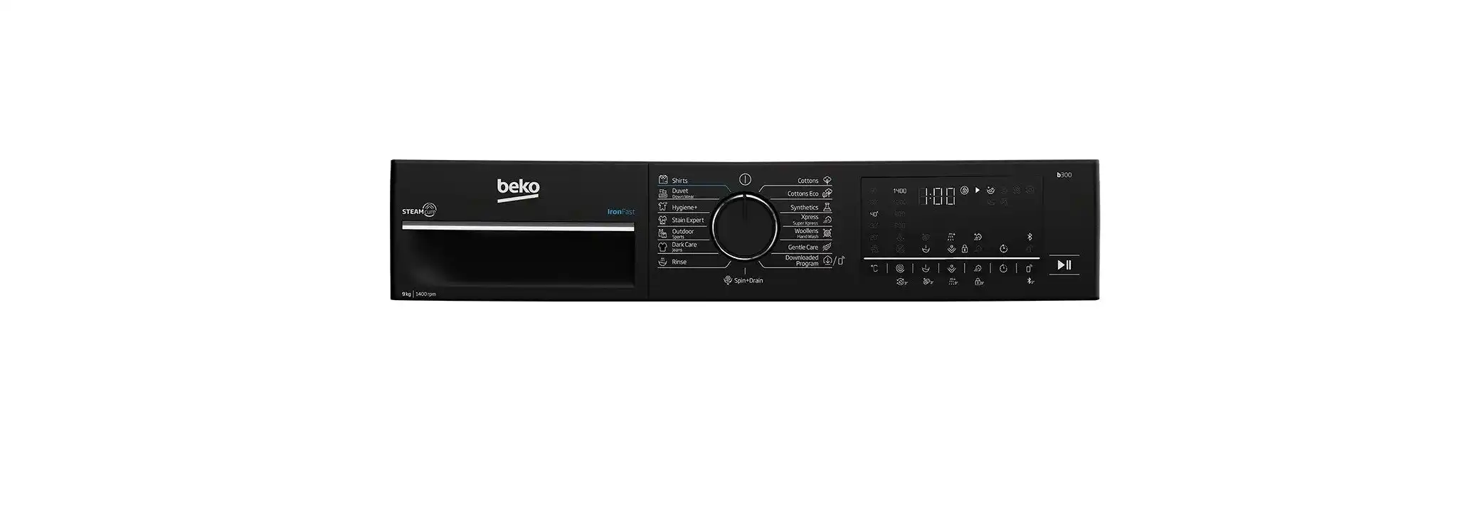 Beko Washing Machine Full Automatic, 10 KG, 1600 RPM, Digital, Steam, Inverter, Black - B3WFU501040BCI