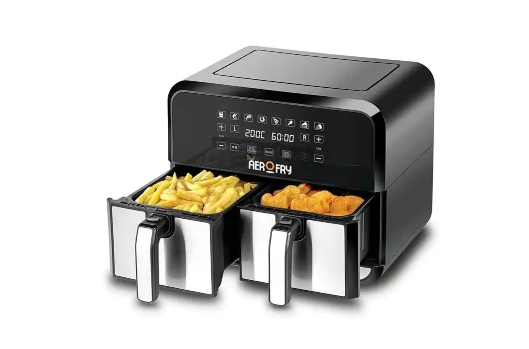 قلاية هوائية بدون زيت بلاك اند ديكر، 1700 وات، 2 درج ( 4 لتر + 4 لتر )، شاشة تاتش ديجيتال، أسود - DZAF1700-B5