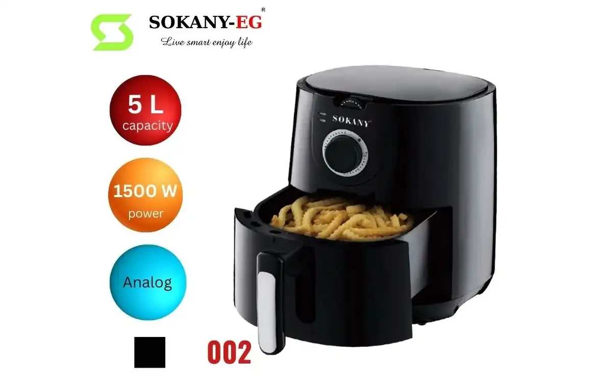 قلاية هوائية سوكاني، 5 لتر، 1500 واط، اسود - AF-002