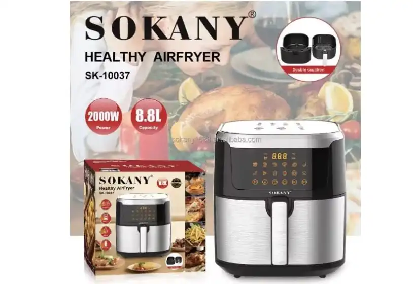 قلاية هوائية سوكاني، شاشة ديجيتال، سعة 8.8 لتر، بقوة 2000 وات، فضي -SK-10037