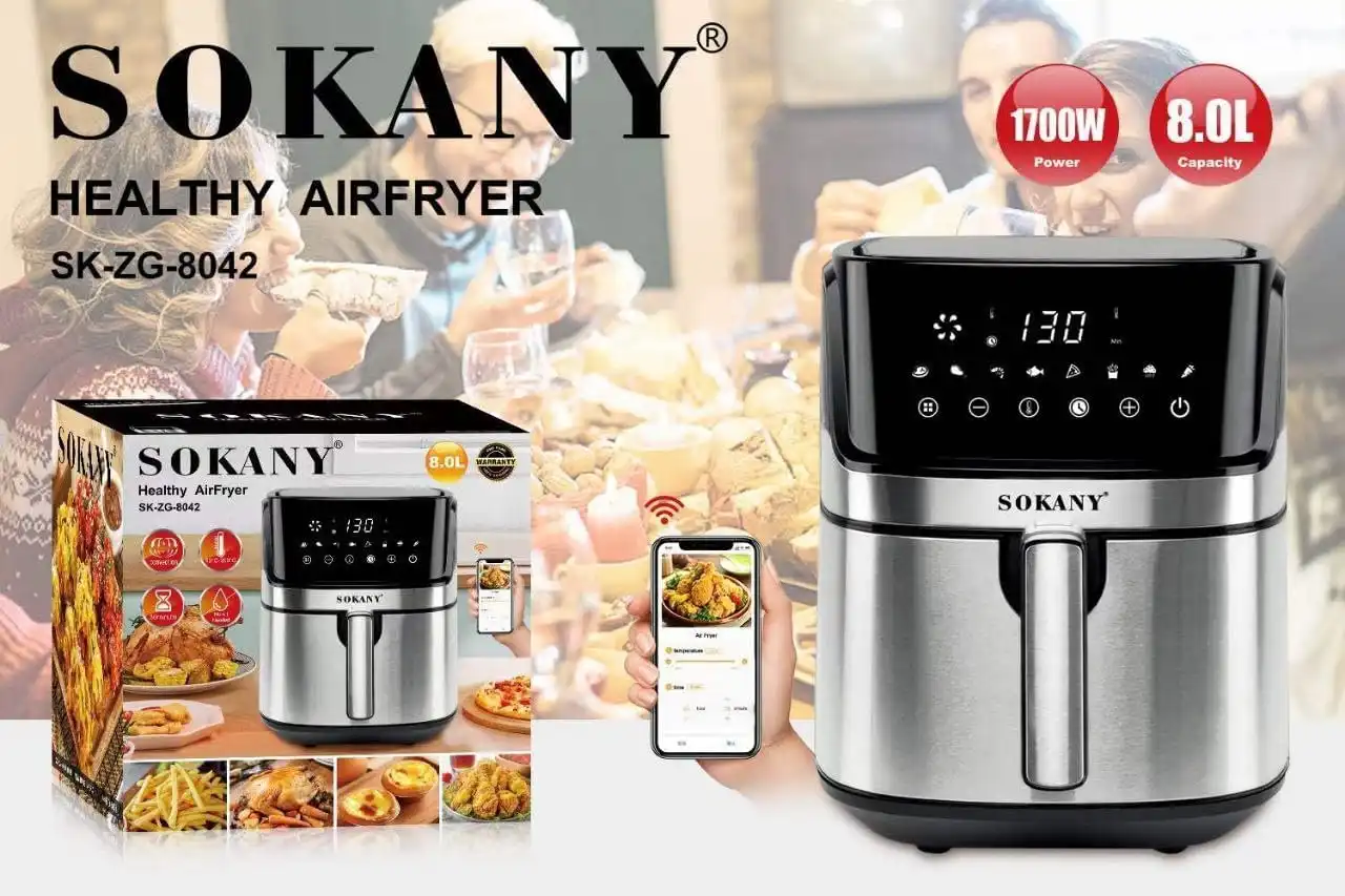 قلاية هوائية سوكاني، شاشة ديجيتال، سعة 8 لتر، بقوة 1700 وات، فضي -SE-8042