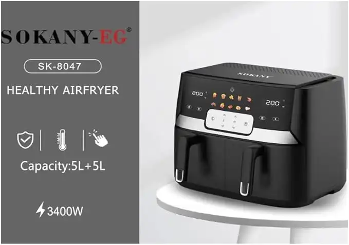 قلاية هوائية ديجيتال من سوكاني، 10 لتر، 3400 واط، اسود - SK-8047