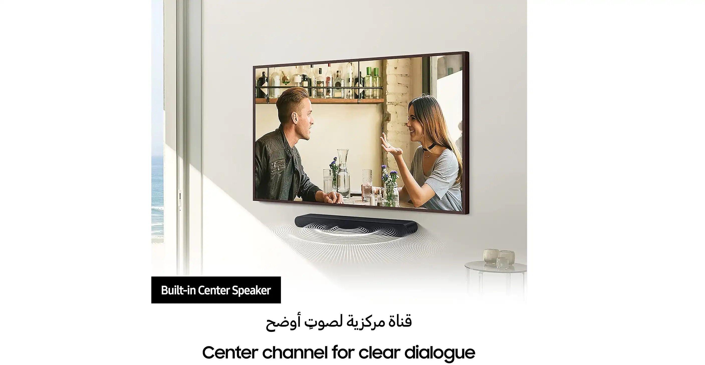 - مكبر صوت مركزي مدمج: يعزز وضوح الحوار وجودة الصوت.