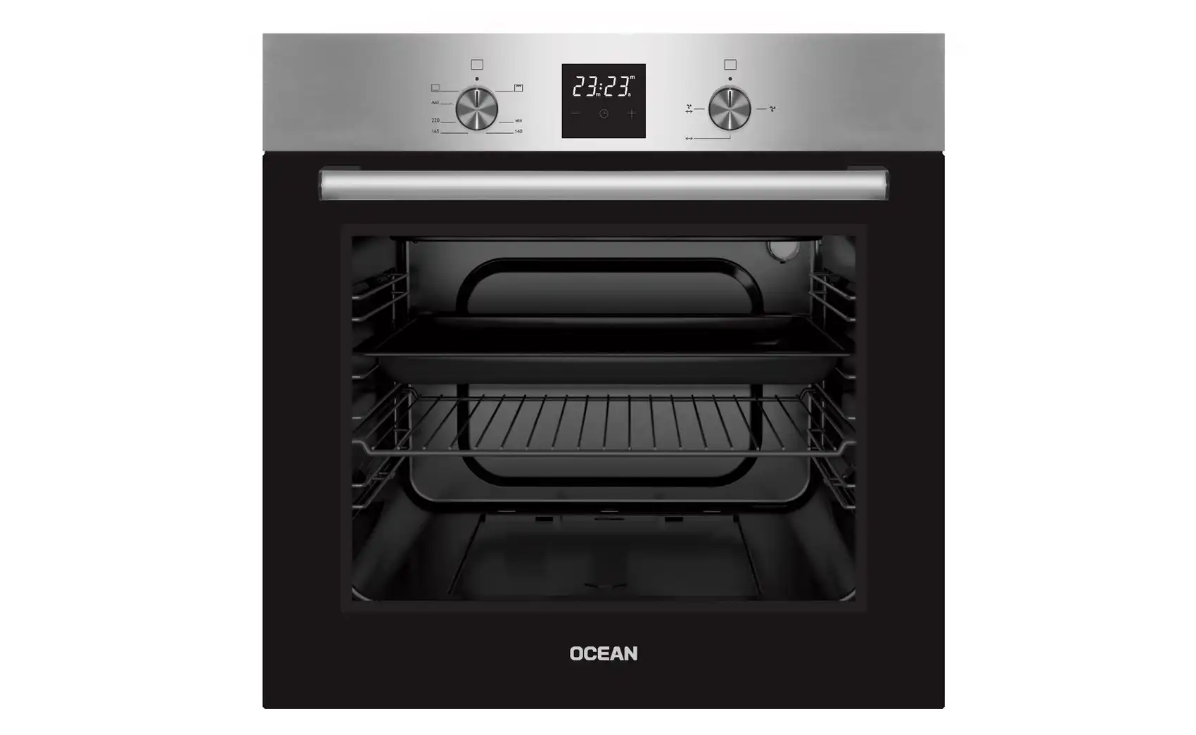 فرن بلت ان هانز،67 لتر ، غاز، ديجيتال، شواية، مروحة، فريم ستيل،60 سم، زجاج أسود - HANS OGO202-12