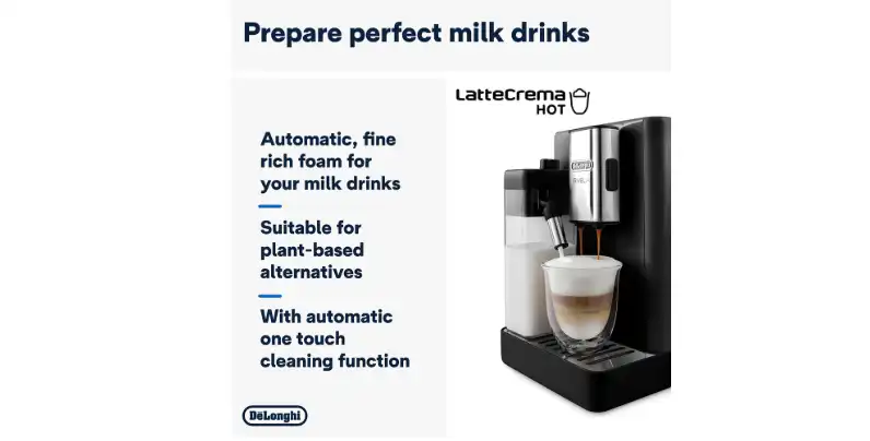 - LatteCrema Hot: أضف رغوة غنية وناعمة إلى مشروباتك التي تعتمد على الحليب باستخدام تقنية LatteCrema Hot، في ماكينة صغيرة الحجم تناسب ذوقك، آلية بالكامل من الصب إلى التنظيف.