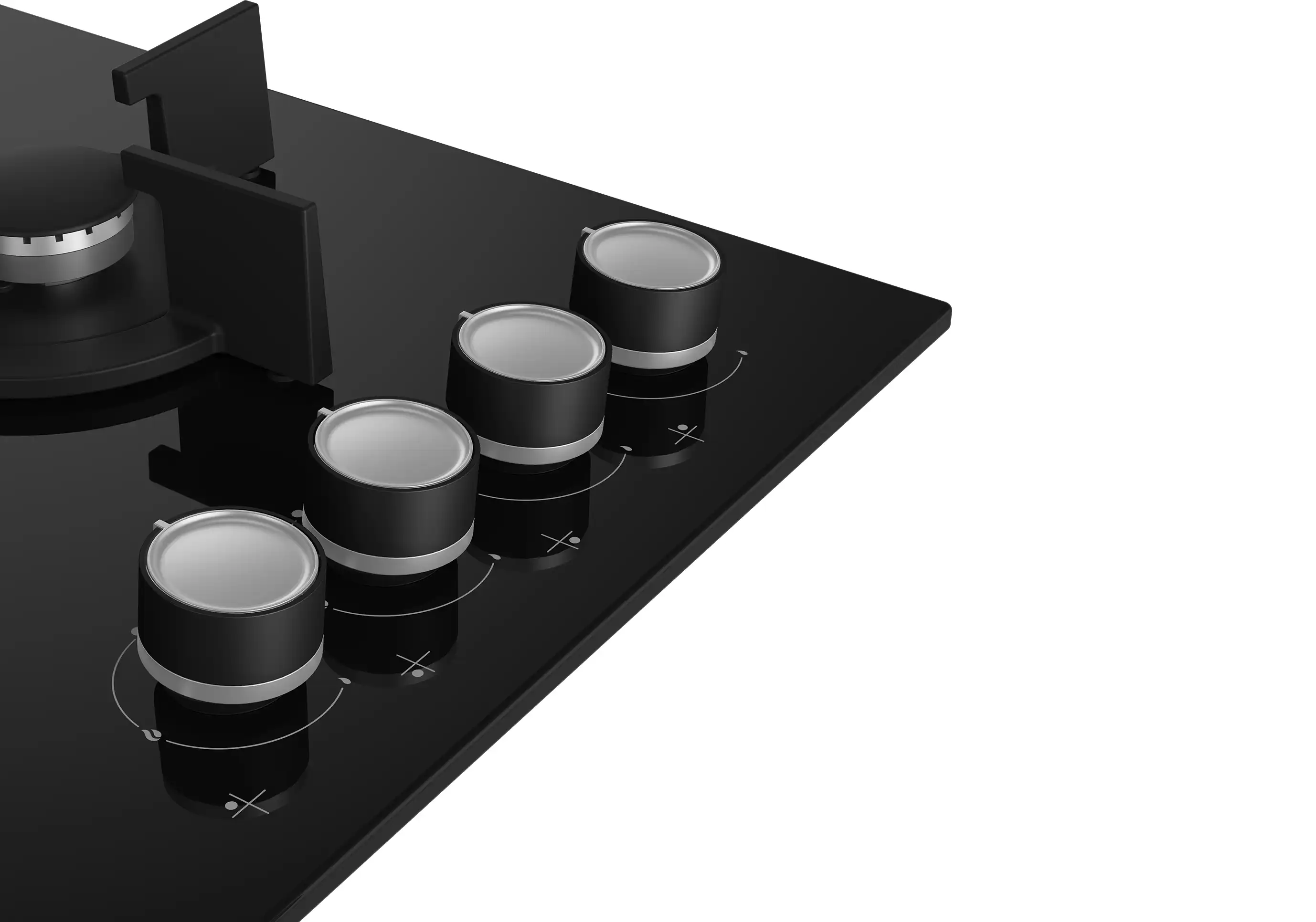 جليم جاز مسطح كريستال اسود غاز 90 سم 5 شعلة GV955HBK