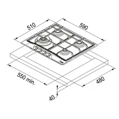 مسطح غاز بلت إن فرانكي، 4 شعلة، 60 سم - FHSM 604 3G DC XS E