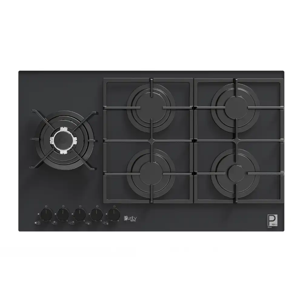مسطح غاز من بيورتي، 5 شعلة غاز، حوامل زهر ثقيلة، 90 سم، أسود - HPT912G