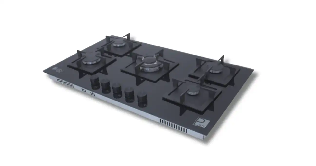 مسطح غاز من بيورتي، 5 شعلة غاز، حوامل زهر ثقيلة، 90 سم، أسود - HPT915G