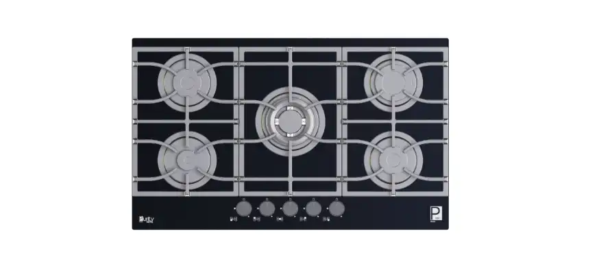 مسطح غاز من بيورتي، 5 شعلة غاز، حوامل زهر ثقيلة، 90 سم، أسود - HPT939G