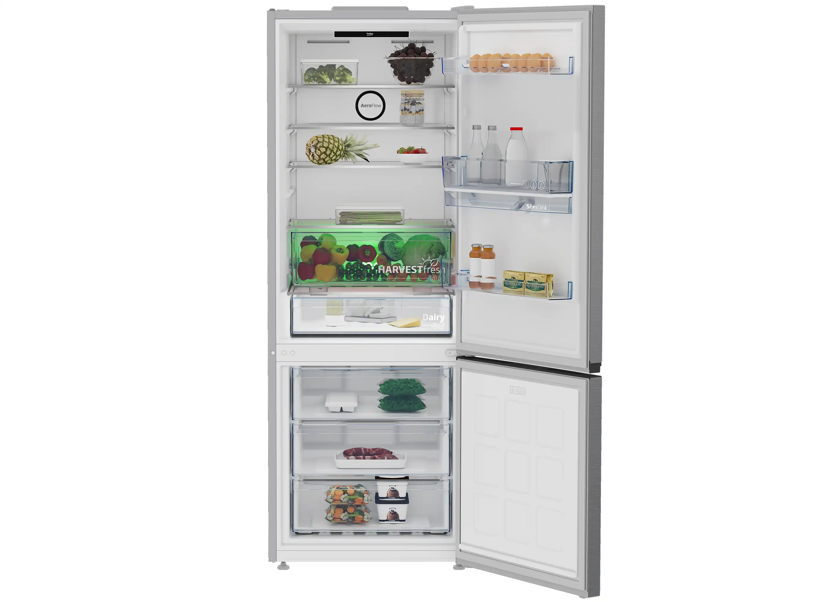 ثلاجة بيكو كومبي، نوفروست، 561 لتر، 2 باب، شاشة رقمية، انفرتر، بحنفية، فضي - B5RCNE565HXPE