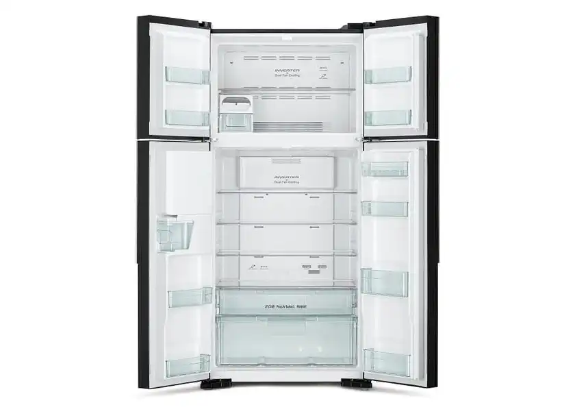 ثلاجة هيتاشي نوفروست، 540 لتر، 4 باب، شاشة تاتش ديجيتال،صنبور مياه، اسود زجاجي ضمان دولي - RW760PUK7GBK