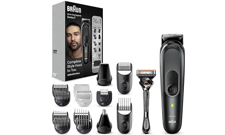 - مجموعة براون ستايل 16 في 1 للعناية الكاملة بالجسم: أدوات مُصممة خصيصاً لتشذيب اللحية والأذن والأنف، وقص الشعر، وتصفيف شعر الجسم بالكامل.