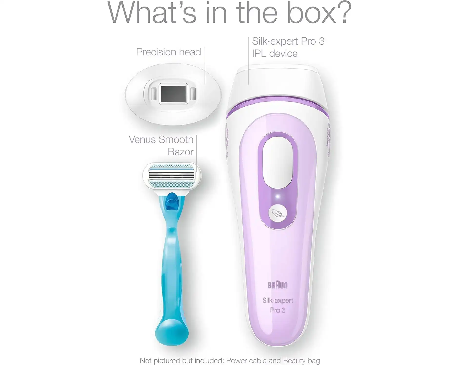 ماكينة ازالة الشعر بالنبضات الضوئية براون سيلك اكسبرت برو 3 مع ماكينة حلاقة جيليت فينس، ابيض/ ارجواني - PL3111