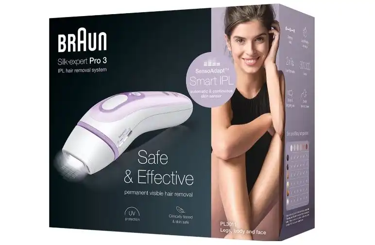 ماكينة إزالة الشعر سيلك اكسبيرت برو 3 بالليزر من براون، 300000 ومضة، أبيض - PL3011