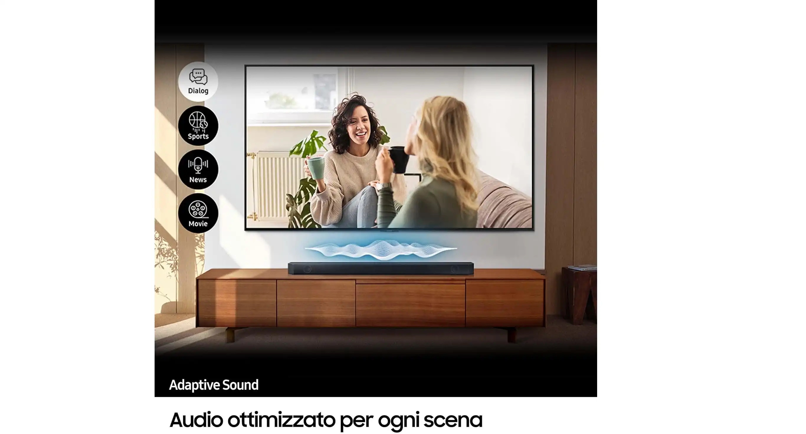 - صوت متكيف: أصوات واضحة وأصوات مفصلة مع أي مستوى صوت للحصول على صوت محسن للمشهد ، وضع الألعاب Pro للمؤثرات الصوتية ثلاثية الأبعاد أثناء اللعب ، HDMI eARC بجودة صوت دون تغيير