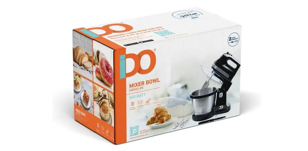 مضرب بيض بالعجان من آي دو، 500 واط، أسود-105-MB500-BK