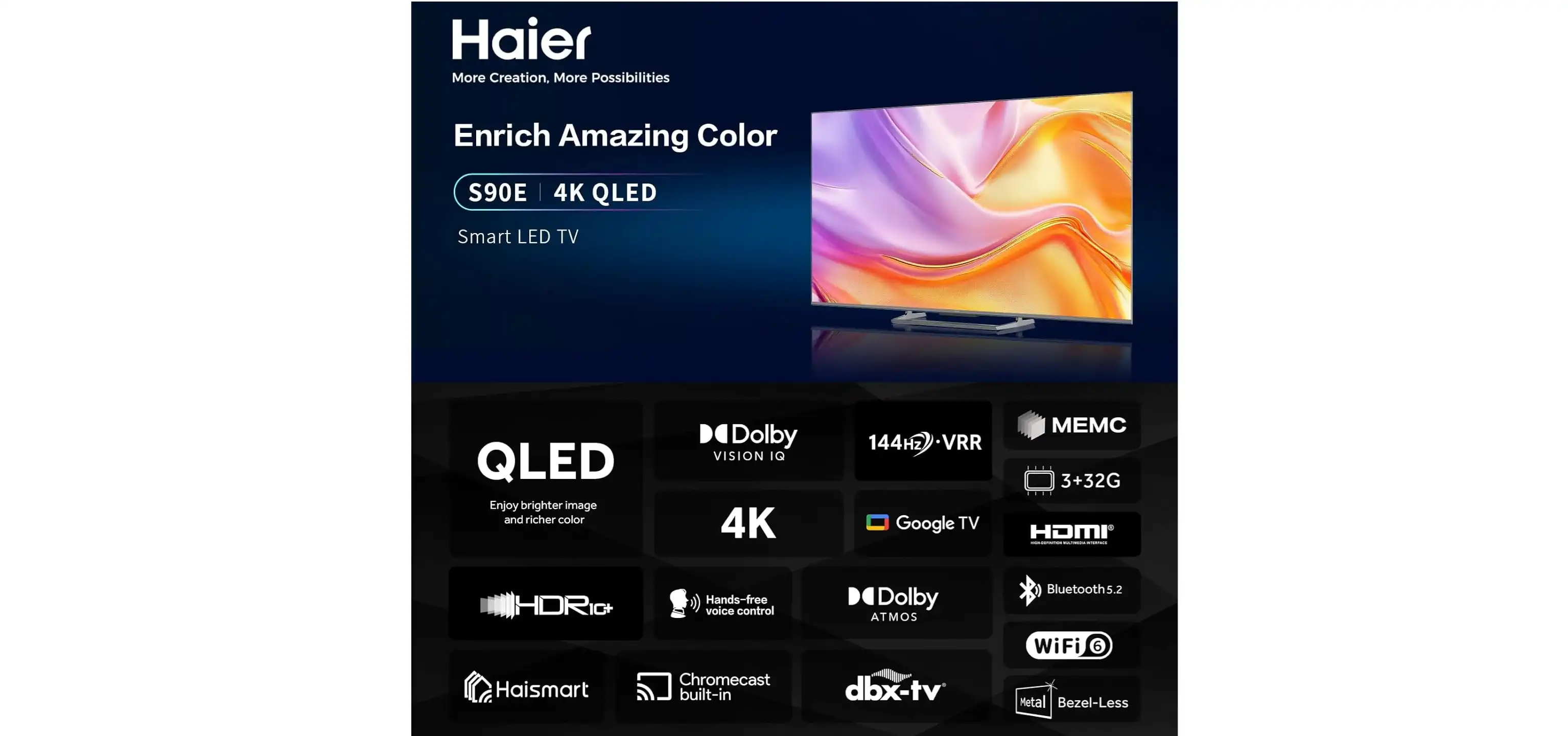 تلفزيون QLED سمارت هاير 55 بوصة بدقة 4K UHD مع ريسيفر داخلي - H55S90EU