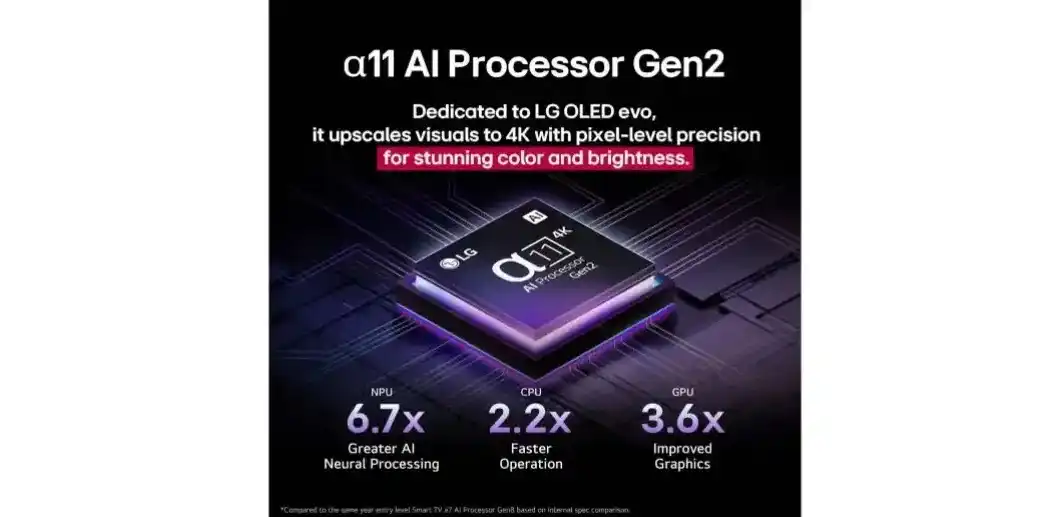 جودة صورة بدقة 4K، ومرئيات مُحسَّنة بالذكاء الاصطناعي وصوت محيطي من معالج alpha 11 AI Processor Gen2