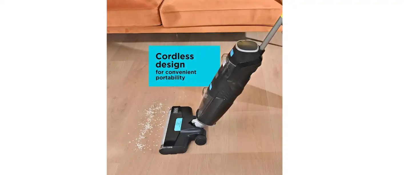 مكنسة كهربائية لاسلكية من بلاك آند ديكر + غسل ثنائي، 25 فولت، 180 واط، أسود - VW252BR-B5