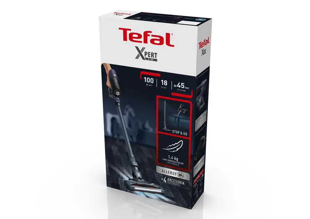 مكنسة كهربائية تيفال، 100 وات، بدون سلك، رمادي / أرجواني - TY6838WO