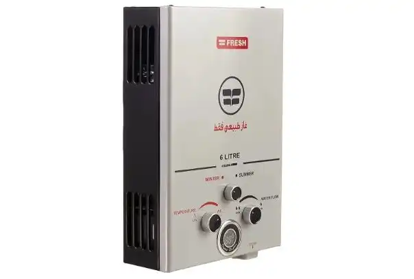 سخان مياه غاز فريش 6 لتر، شاشة رقمية، ادابتور، فضي - 500011089