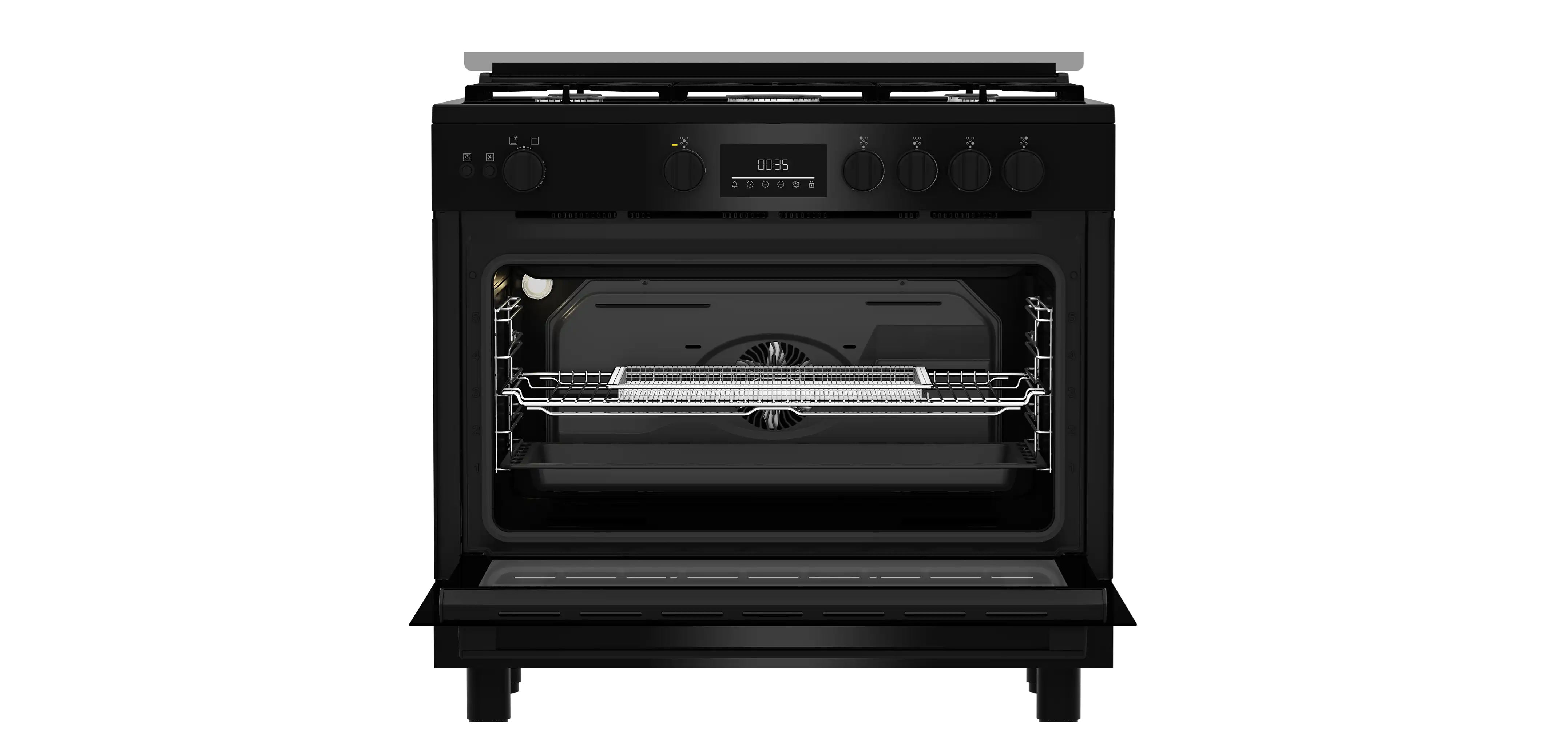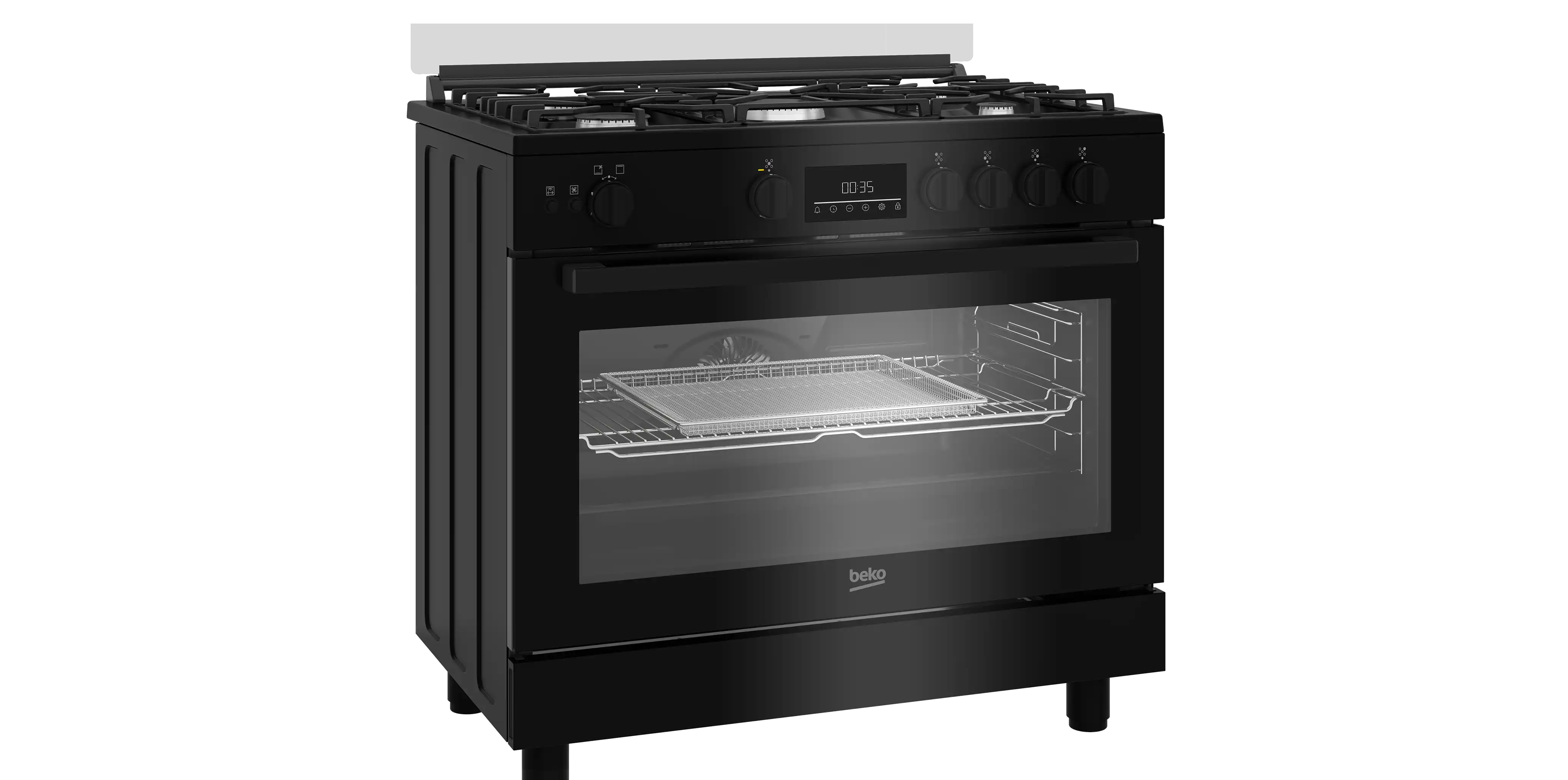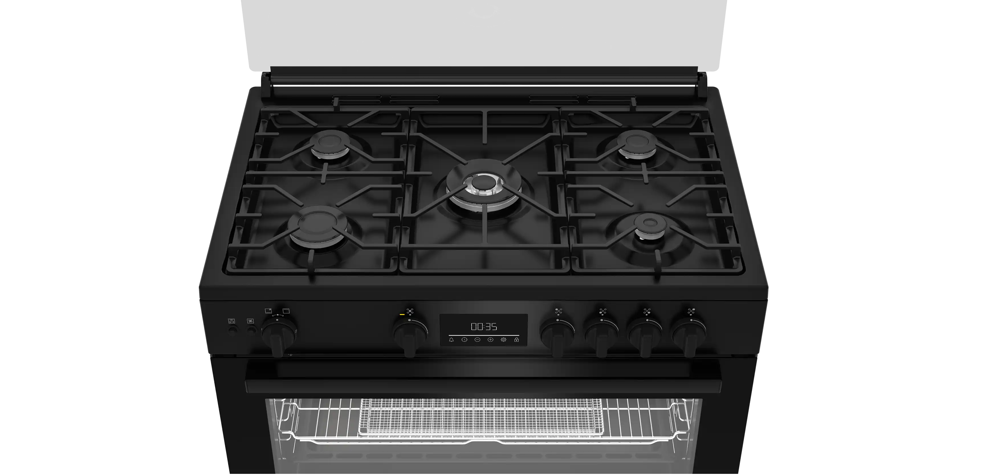 بوتاجاز بيكو، 5 شعلات بمروحة، أمان، 90 سم، أسود - BGGR 11225 GB
