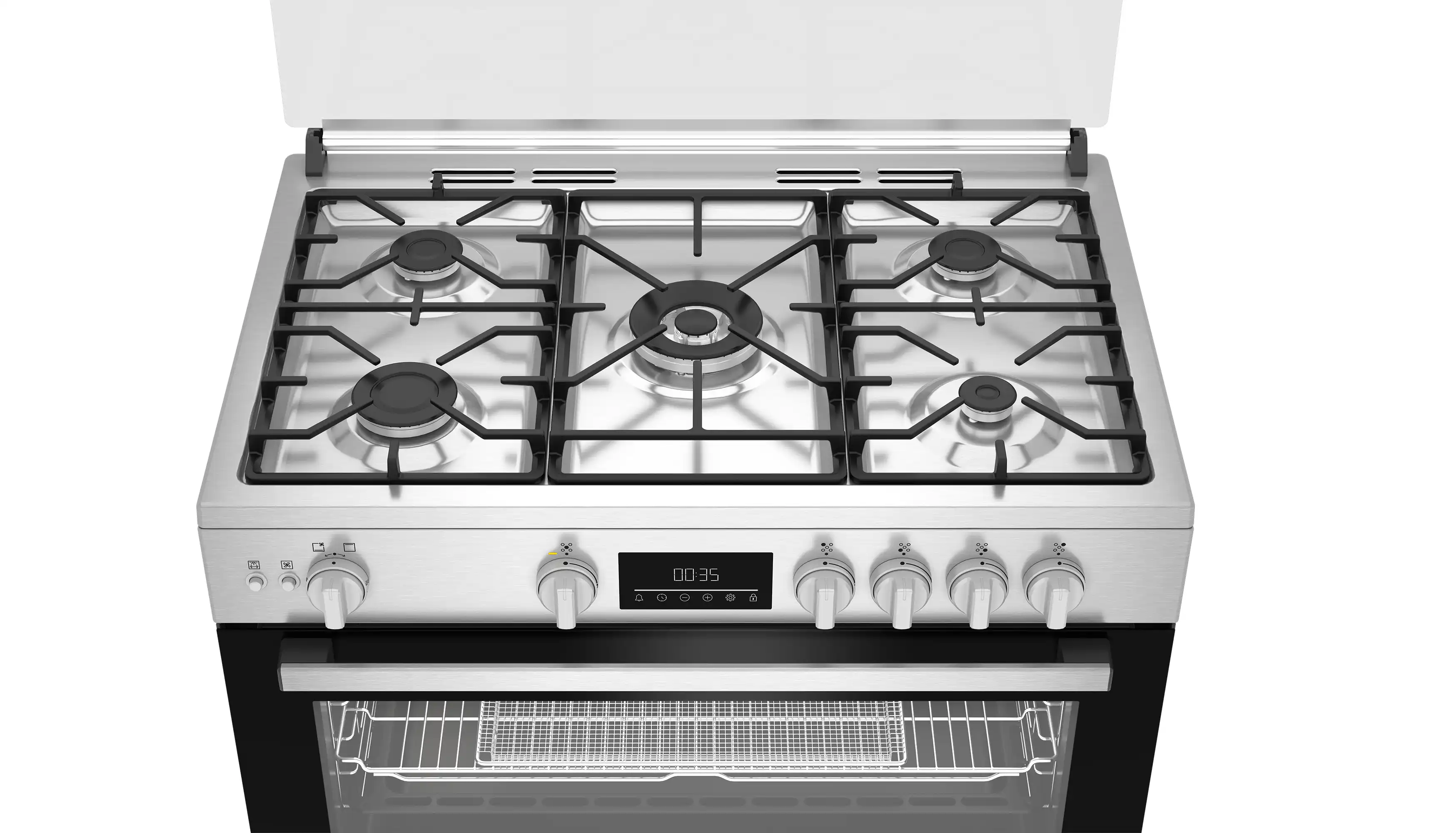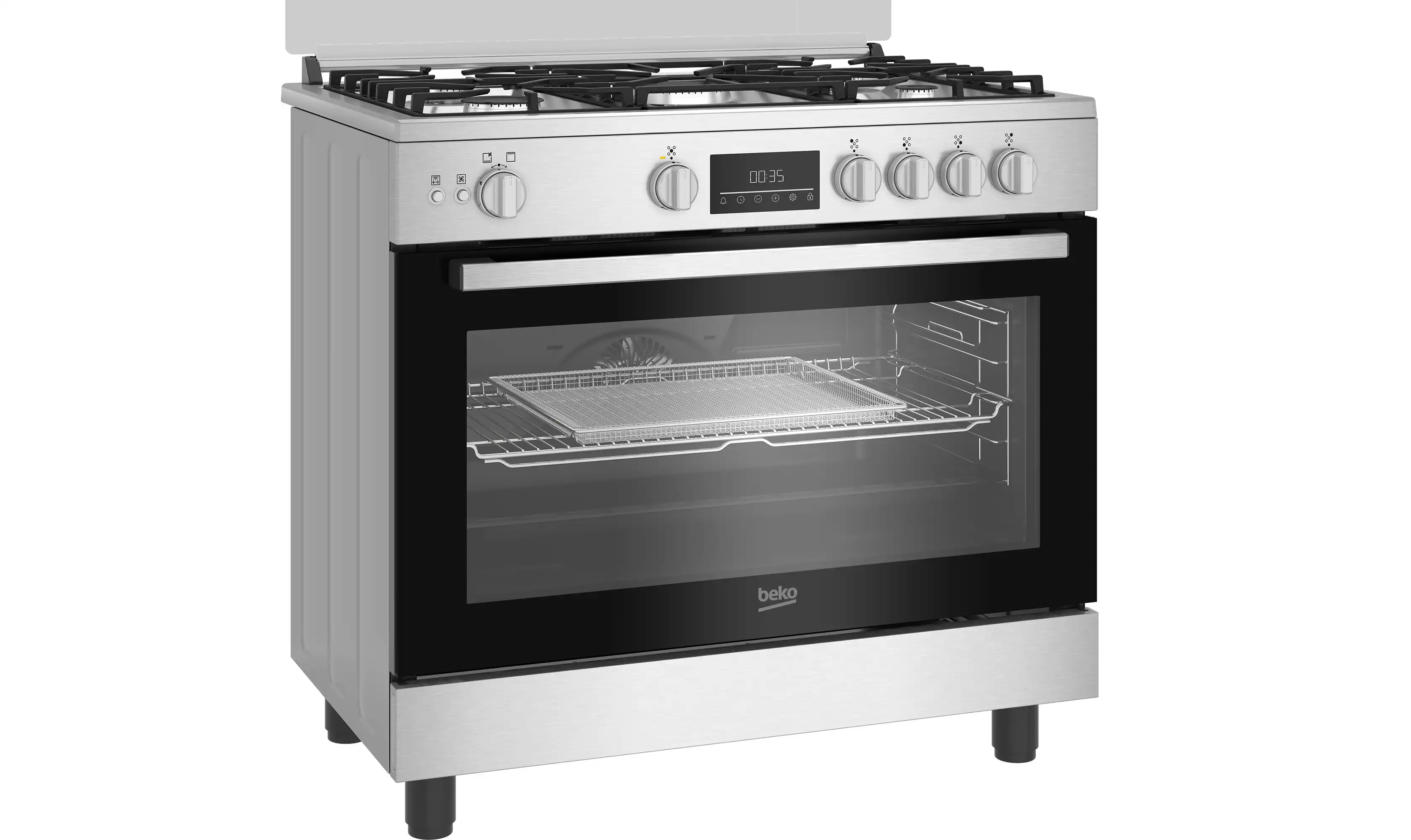 بوتاجاز غاز بيكو بشواية وخاصية اير فراي، 5 شعلة، ستانلس ستيل - BGGR 11225 GXA