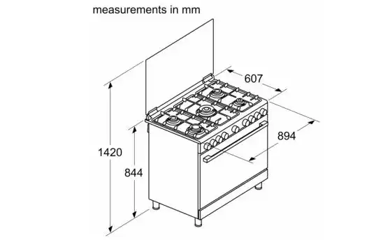 - أوضاع التسخين: تسخين سفلي بالغاز، إذابة التجميد، تسخين سفلي بالغاز، شواية/شواية غاز، سيخ دوار