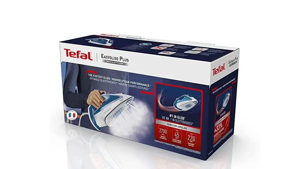 مكواة بخار ايزي جليس بلس من تيفال، 2700 واط، ازرق / ابيض - FV5751E2
